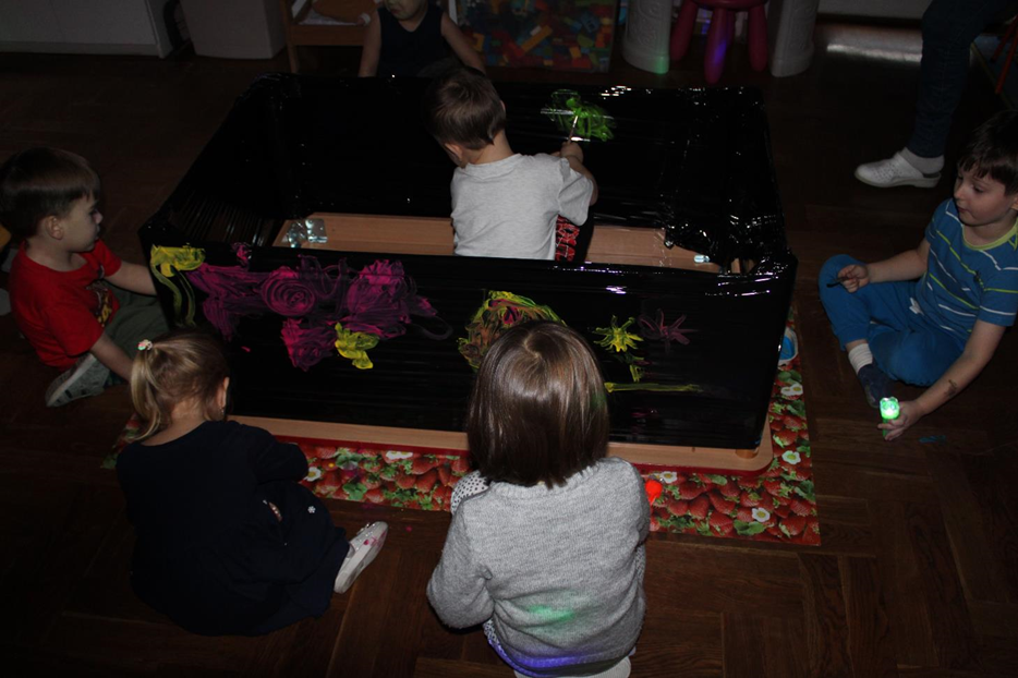 W piątek 5 grudnia, gwiezdna podróż Mikołaja przeniosła dzieci z Biedronek w świat magii i wyobraźni. Przedszkolaki tworzyły zaczarowane sanie malowane farbami, a blask latarek i kul światła dodawał zabawie niezwykłego uroku. Wspólne chwile w kole stały się okazją do twórczej ekspresji, radości i odkrywania piękna wspólnej zabawy.
