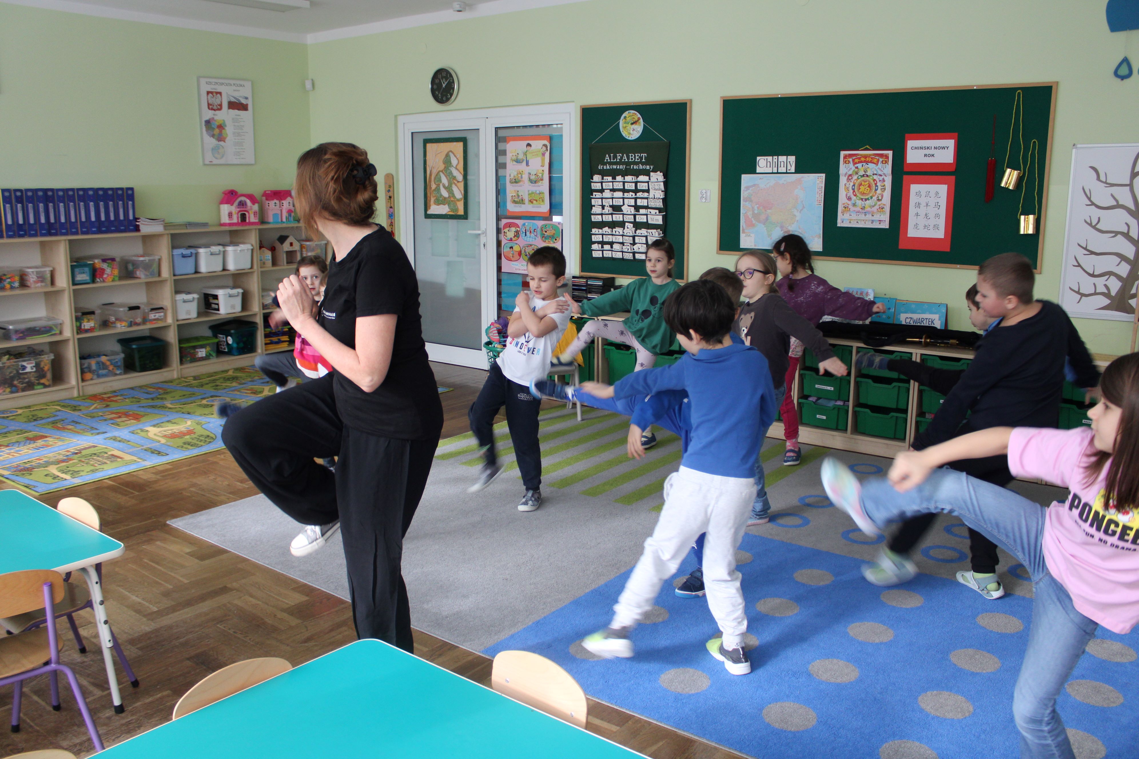 Największą atrakcją były warsztaty oraz pokaz tai chi - tradycyjnej chińskiej sztuki ruchu. Dzieci z ogromnym zaangażowaniem uczestniczyły w ćwiczeniach, ucząc się płynnych, spokojnych ruchów. Była to nie tylko świetna zabawa, ale również cenna lekcja uważności i poznawania innych kultur.