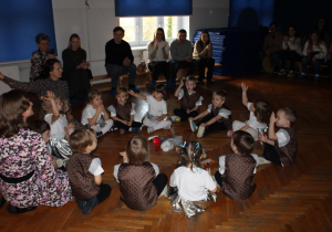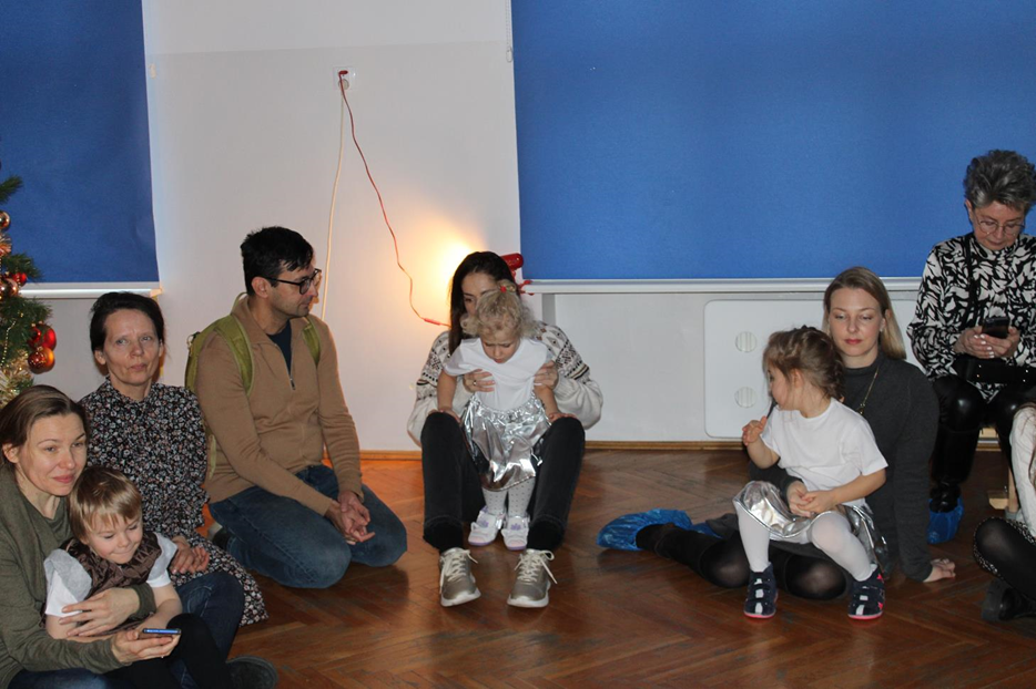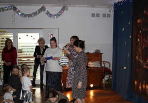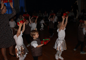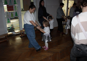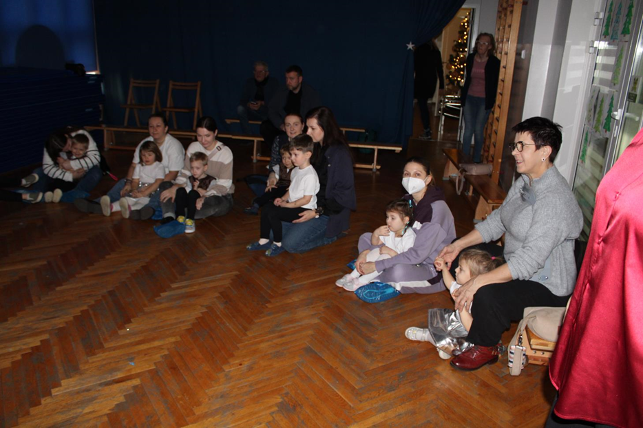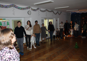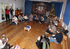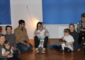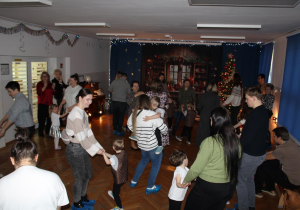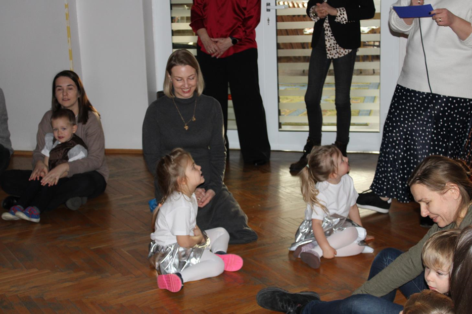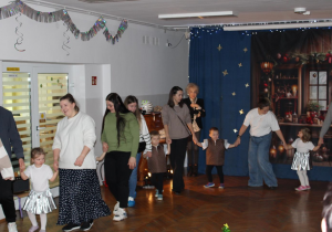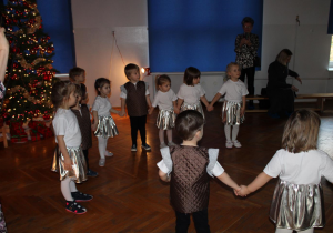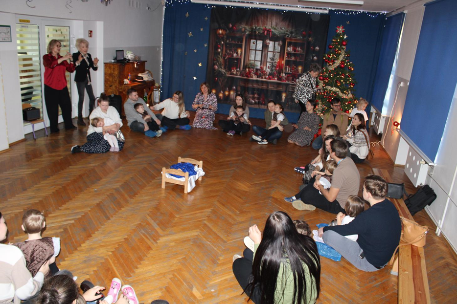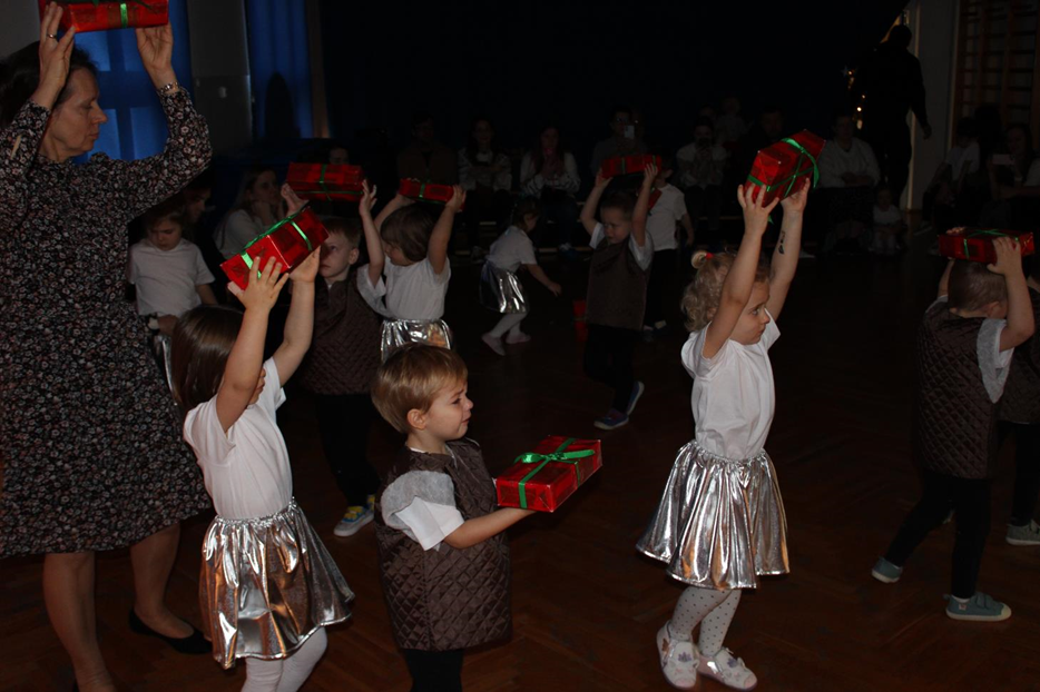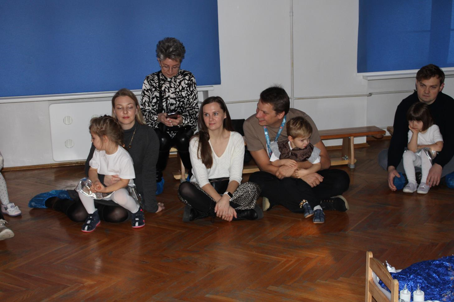 Już od pierwszych chwil panowała radosna atmosfera. Wszyscy bawili się w kole podczas zabawy „Wkoło choinki". Nie zabrakło piosenek i tańców w parach. „Malusieński Jezus" na kolanach u rodziców był wzruszającym momentem, a zabawa w „jazdę saniami" do piosenki „Pędzą sanie" wywołała wiele śmiechu. Spotkanie zakończyła opowieść „Bombeczka" czytana przez nauczycielkę i rodzica, a na dzieci czekały pierniczki.