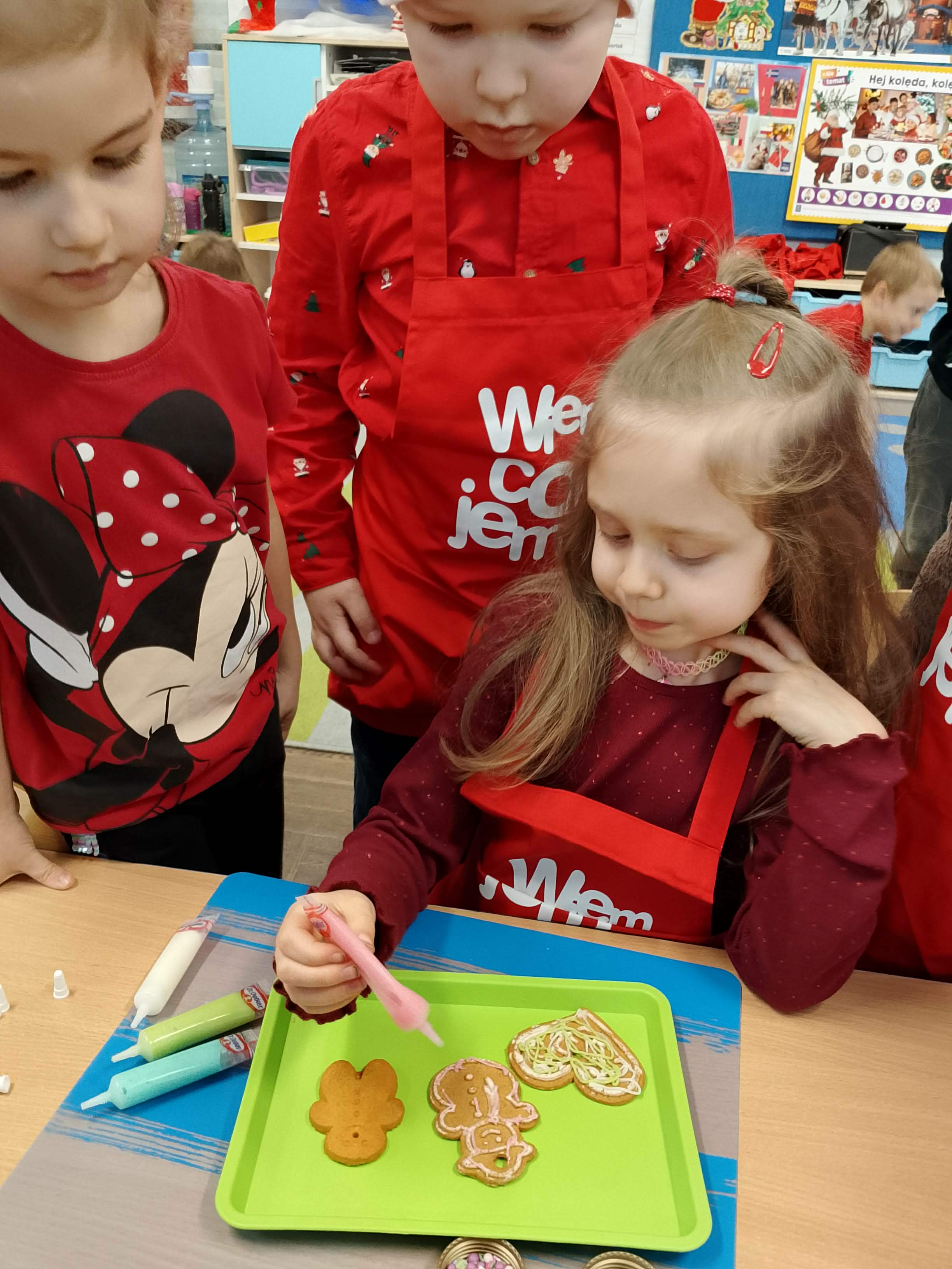 W piątek 5 grudnia, nasza grupa Kropelki świętowała Mikołajki w wyjątkowo słodki sposób! Dzieci z ogromnym zaangażowaniem przygotowywały własnoręczne pierniczki. Było mnóstw radości, kreatywności i mikołajkowej magii. A nasze małe Kropelki spisały się na medal, pierniczki wyglądały i pachniały wspaniale!