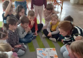 W ramach naszego cyklu „Czytanie z rodzicami" odwiedziła nas mama Jadzi, która zabrała Kropelki w niezwykłą podróż do świata książek. Dzieci z ogromnym zainteresowaniem słuchały opowieści i śledziły ilustracje.
