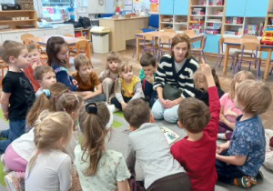 Dziękujemy mamie Jadzi za zaangażowanie i piękne czytanie. To dla dzieci ogromna radość, kiedy rodzice stają się częścią ich przedszkolnego dnia.