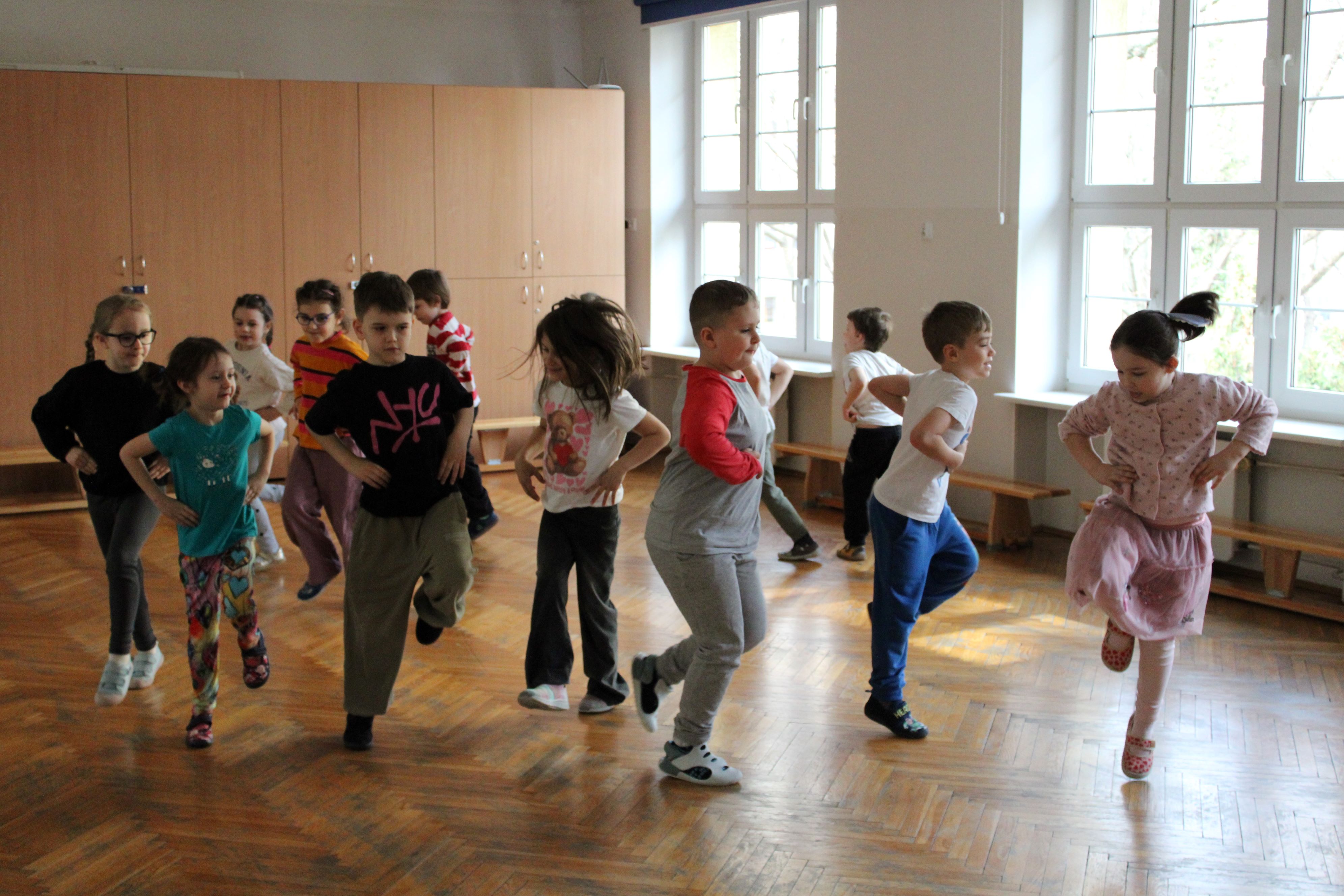 Dzisiaj wszystkie grupy przedszkolaków wzięły udział w zajęciach z rytmiki. Był to czas pełen radości, ruchu i wspólnej zabawy przy muzyce.